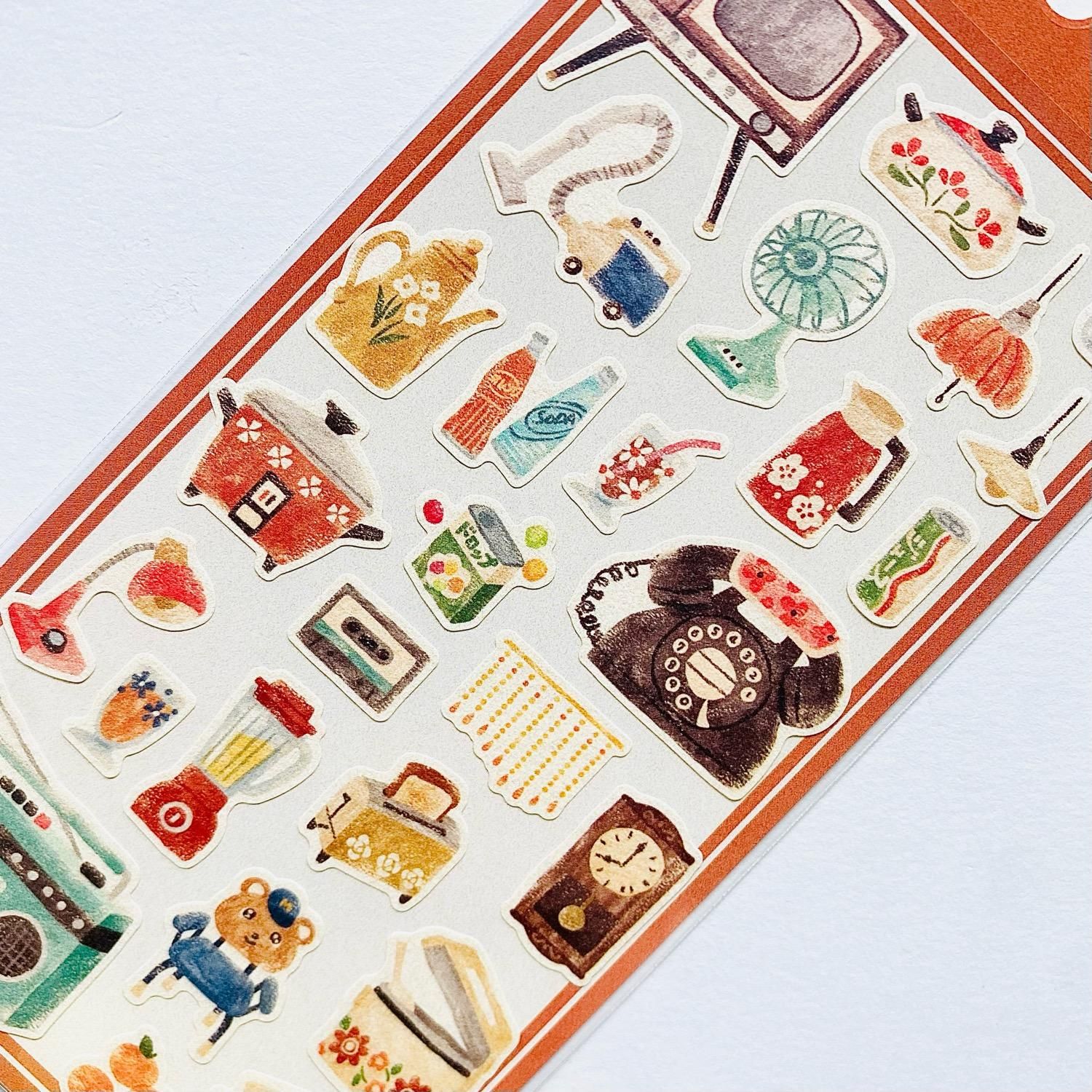 レトロテーマのシールです。 懐かしいモチーフや色合いが特徴で、普段のデコにも合わせやすいシールです。