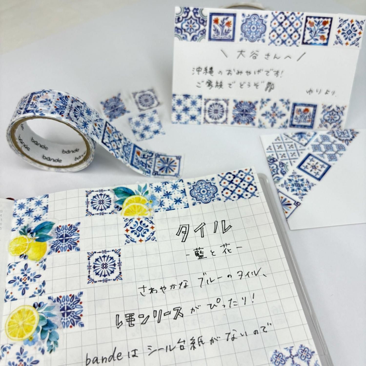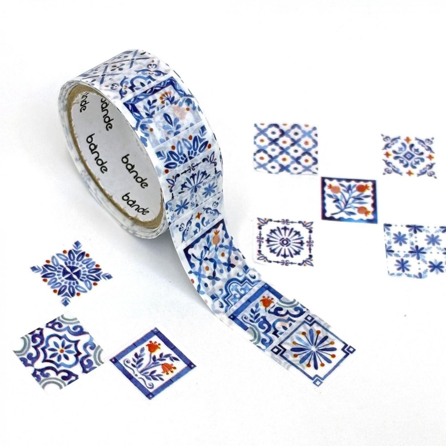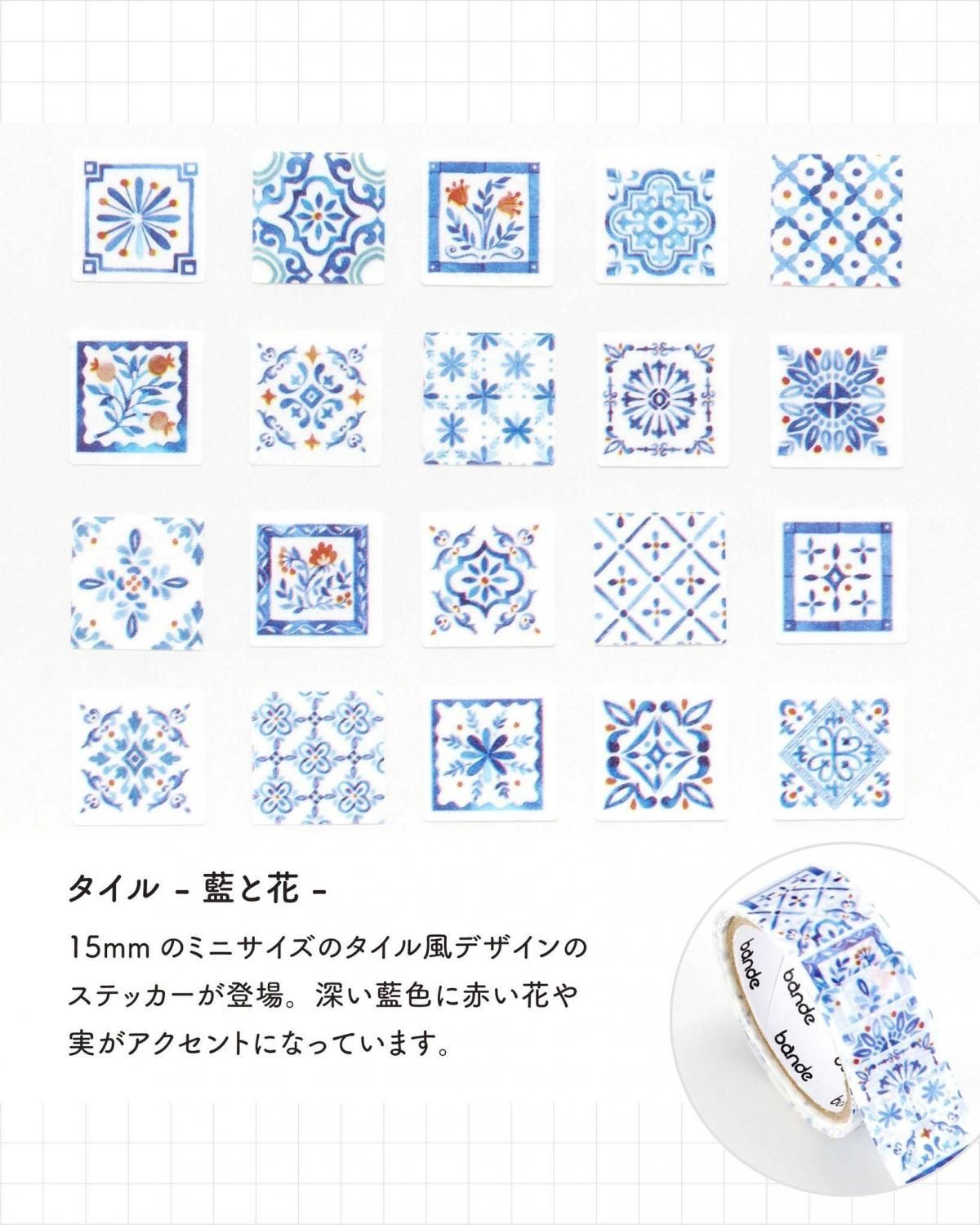 bande マスキングロールステッカー タイル -藍と花-
