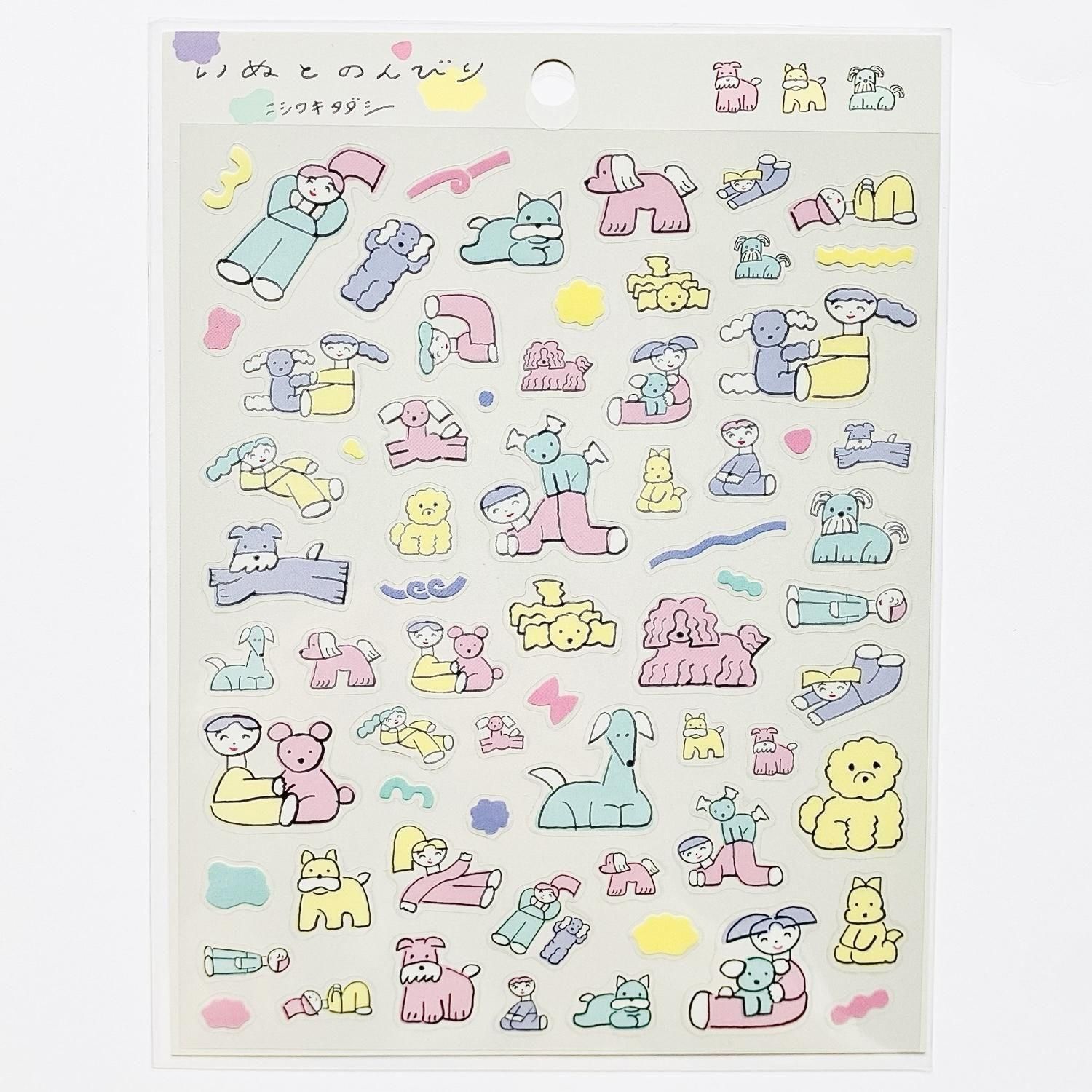 思わずクスッと笑ってしまうようなユーモラスな世界が広がる、イラストレーター・ニシワキタダシのシートシール。 ゆる〜い線で伸びやかに描かれたモチーフたちがとってもかわいいです。手帳や小物のデコにもぴったり!