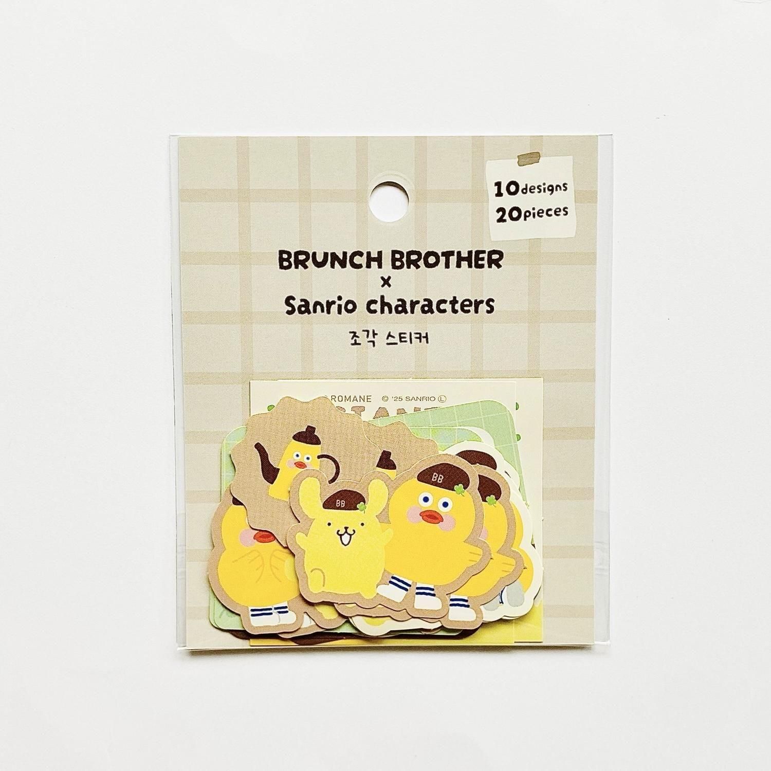 韓国発の人気キャラクター「ブランチブラザー」と「サンリオキャラクターズ」が夢のコラボ!ブランチカフェですごす様子を描いた、オリジナルデザインのニューコレクションです。 スペシャルな仲良しコンビのいろんな表情が楽しめる「フレークステッカー」は、ランチカフェでのくつろぎタイムや、仲良しな日常のひとコマまで、愛らしくてちょっぴりシュールな世界観がぎゅっと詰まっています。 ラインアップは、トースト×シナモロール、ダック×ポムポムプリン、パピー×ハローキティ、バニー×クロミの全4種類。