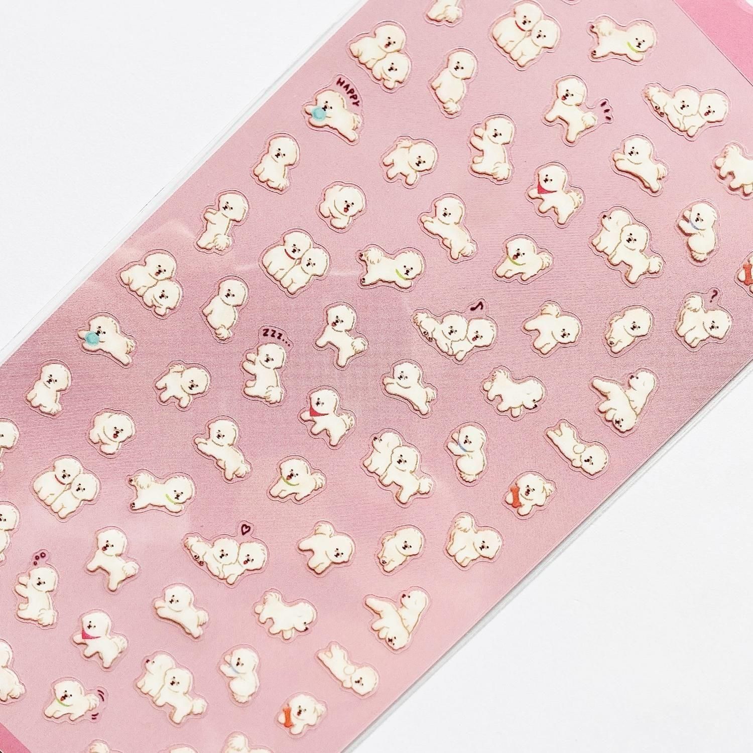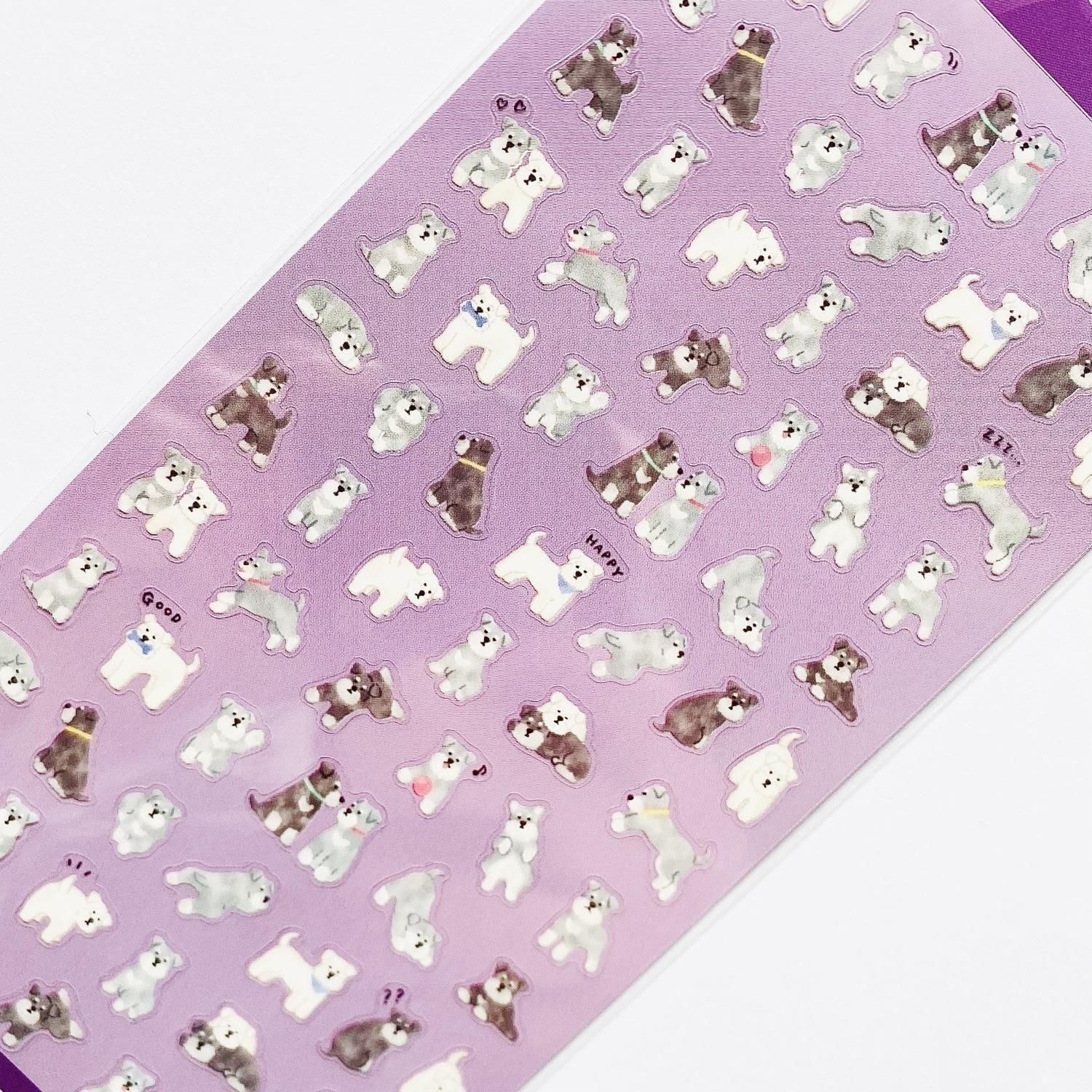 わんちゃんがテーマのミニシールが、豊富なラインナップで登場です。それぞれの表情やポーズがポイントになっています。