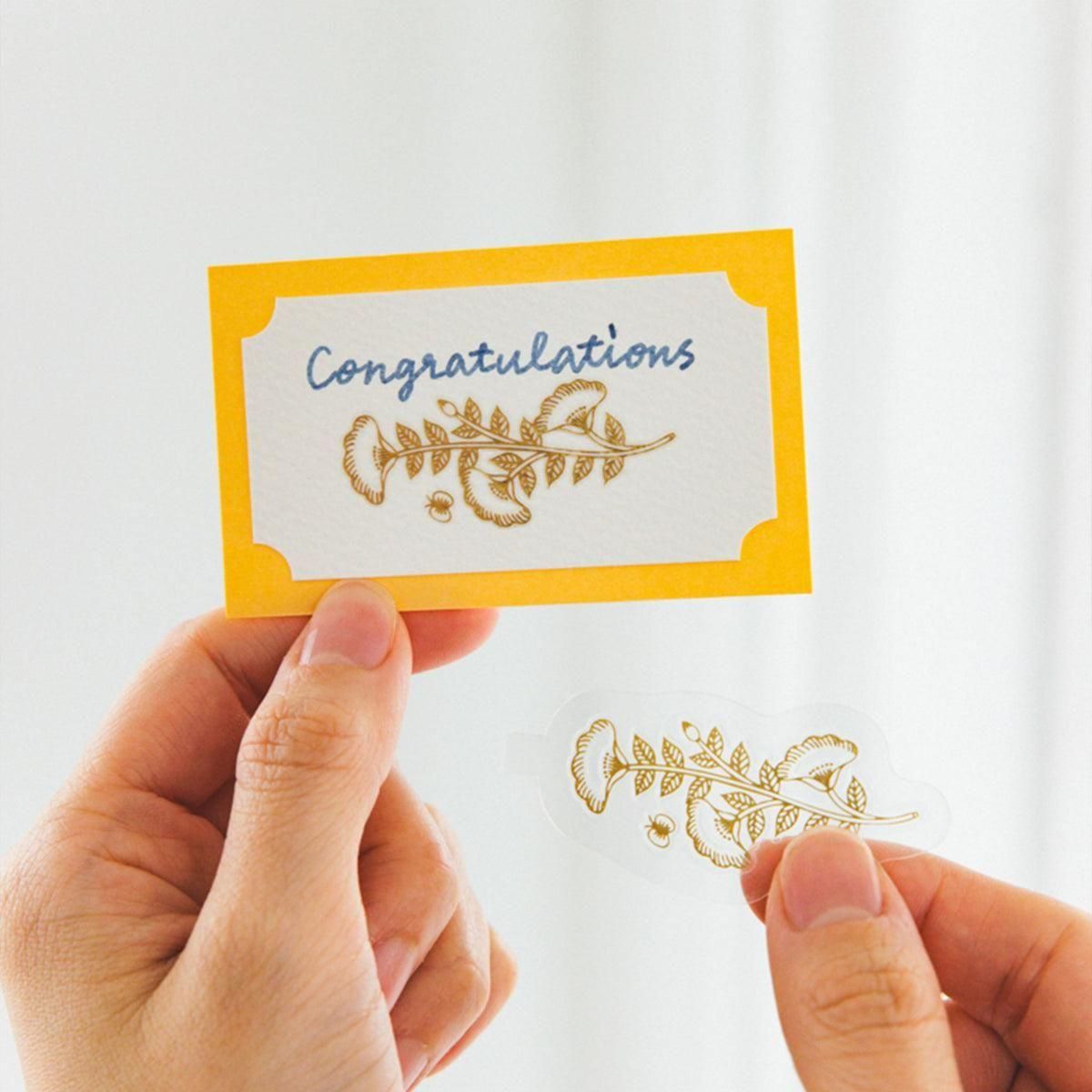 かさばらないから「持ち歩ける」ケース付きで「使いやすい」コンパクトな、転写フレークシールです。 元から箔押しされているような仕上がりが楽しめる転写シールです。フレーク形状でカットする必要がないため、指で擦るだけで手軽に転写を楽しめます。 上品な輝きの金箔を活かした繊細なデザインです。